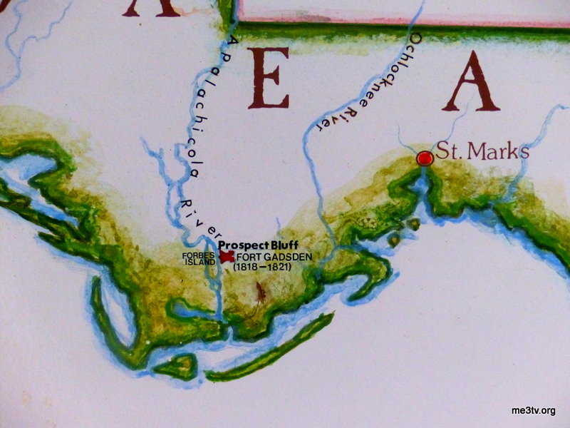 FORT GADSDEN on the Apalachicola River. It was a fort with a lot of owners. Spain, Britain, USA, Confederates. The river was a gateway and it was at a strategic location to block transportation. At one point, In 1815 under weak Spanish ownership and recently abandoned by British administration, it became a way-point for escaped slaves out of the the United States.